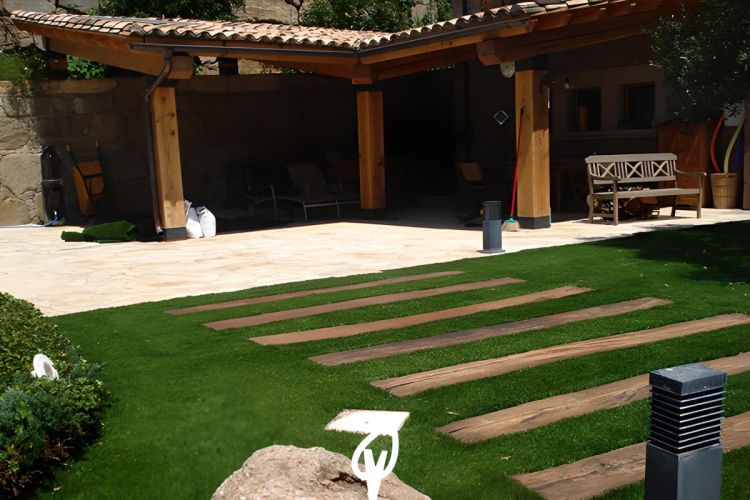 - Jardines y Paisajismo: Las traviesas ecológicas son ideales para crear bordes en parterres, senderos, escalones o incluso pequeños puentes en estanques. Su aspecto rústico complementa perfectamente los espacios naturales, añadiendo un toque elegante y auténtico.